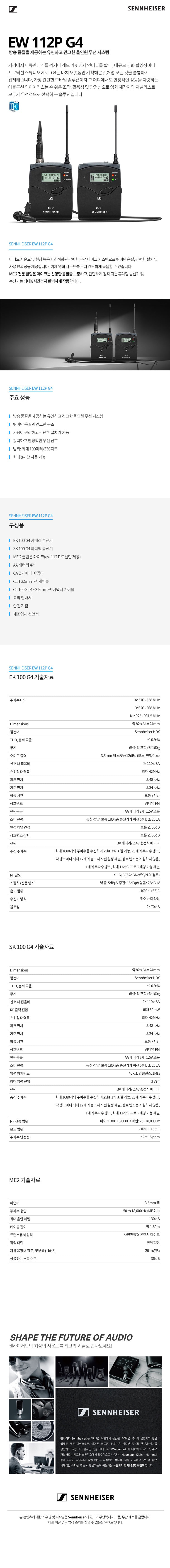 SENNHEISER EW 112P G4 캠코더용 무선 마이크 (젠하이저)
