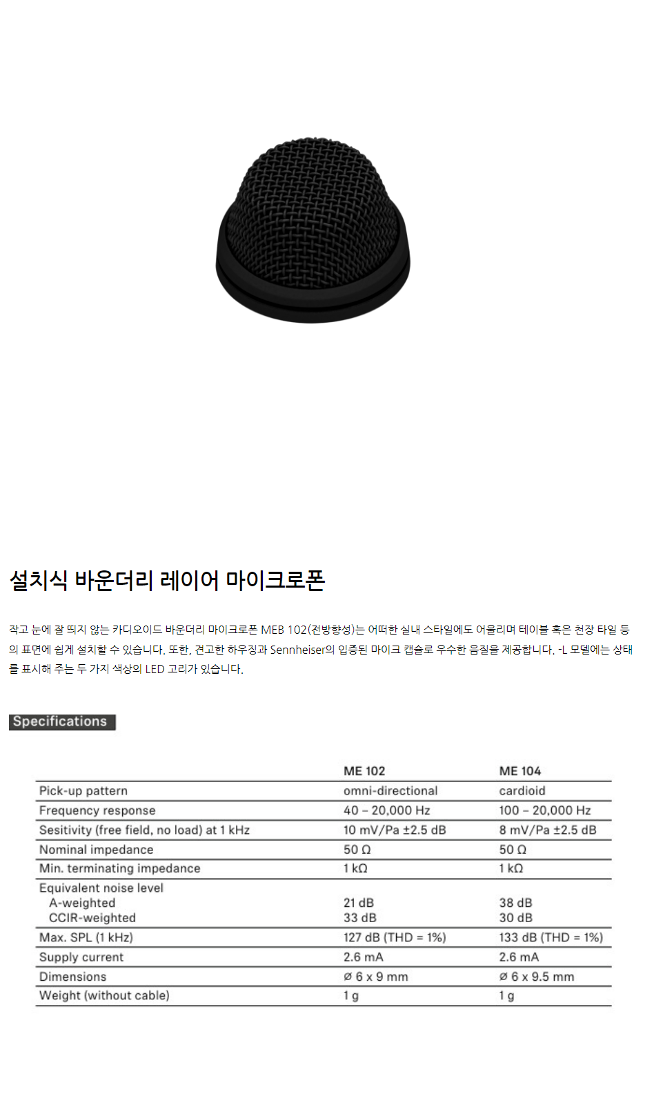 젠하이저 MEB 104 매립설치용 바운더리 마이크 단일지향성 취조실 회의실 진술녹화실